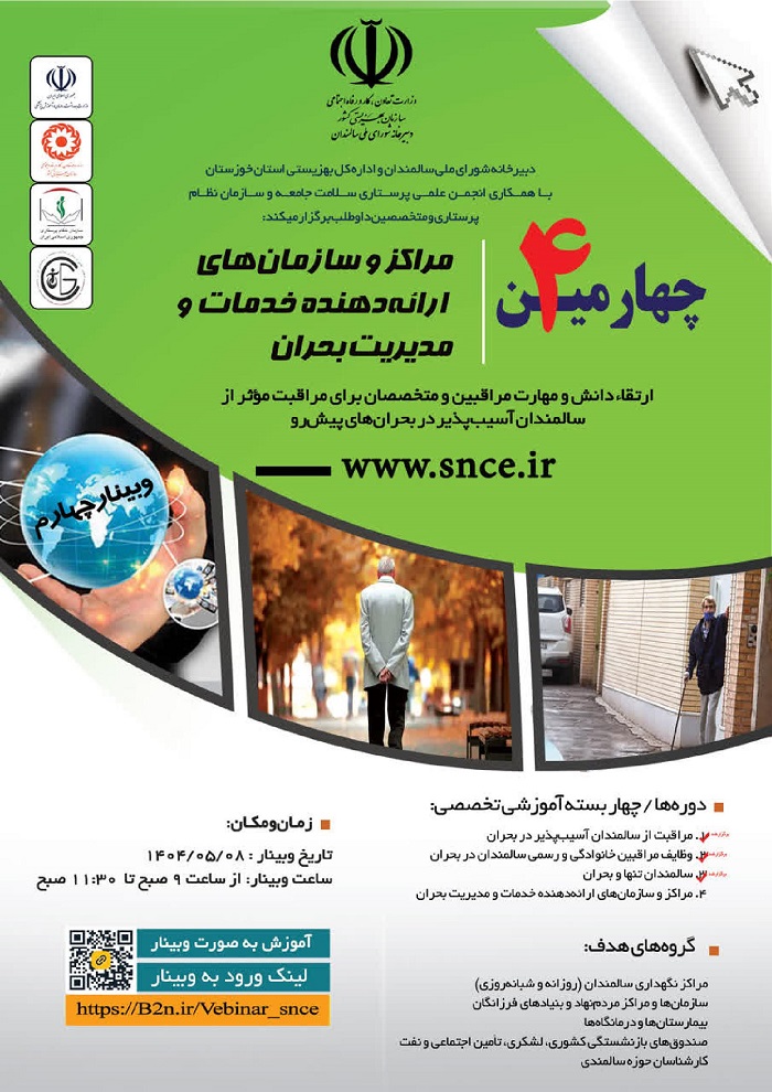 سلسله وبینارهای آموزشی سالمندی در بحران برگزار می گردد.