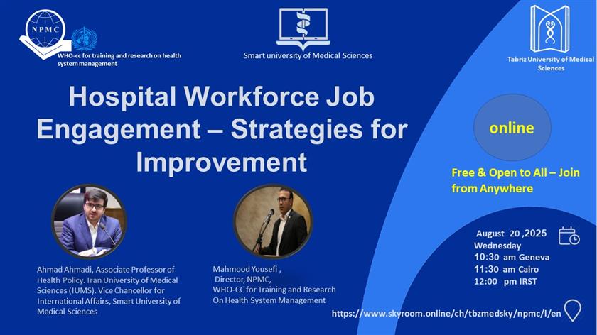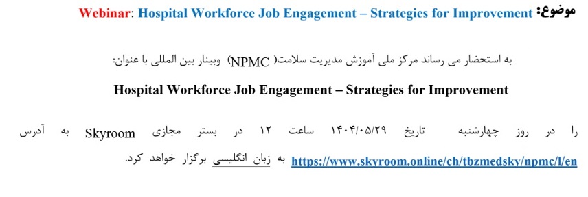 وبینار آموزشی بین المللی Hospital Workforce Job Engagement – Strategies for Improvement ۲۹ مرداد ۱۴۰۴ | ۱۰:۰۱ کد : ۵۳۹۲۵ اطلاعیه ارسال به دیگران نام شما ایمیل شما ایمیل دریافتکننده ارسال انصراف تعداد بازدید:۱۳۹۷ وبینار آموزشی بین المللی Hospital Workforce Job Engagement – Strategies for Improvement